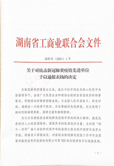 经省工商联评选,湖南家协被评定为“抗击新冠肺炎疫情先进单位”。