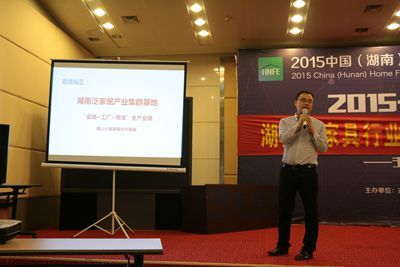 湖南省家具行业协会副会长单位益阳顺德城代表做项目介绍