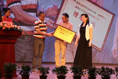 秘书长刘发刚向岳阳亿丰时代广场授予湖南家协理事牌匾