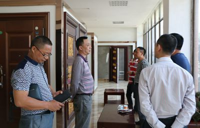 今日,湖南家协常务副会长袁文和、秘书长刘发刚等达到宁乡煤炭坝镇,考察宁乡门业基地,对门业基地以及筹备成立湖南省门业协会等情况进行交流、了解,宁乡县煤炭坝镇园区管委会主任黄军、湖南家美门业有限责任公司董事长王海峰、宁乡县正大建材有限公司董事长杨志强、长沙喜之源门业有限公司董事长刘建立等参与讨论。
