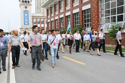 晚安家居董事长曹泽云带领参观绿色生态的晚安工业园