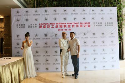 湖南省家具行业协会副会长何伟斌与欧工国际集团董事长欧杰合影