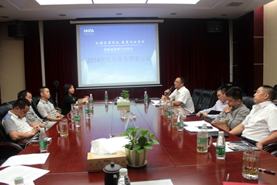 【湖南家协讯】2014年9月13日,湖南省一届第十一次常务理事会议在湖南晚安家居实业有限公司3楼会议室举行。协会会长曹泽云、党支部书记练军、常务副会长袁文和、副会长何伟斌、孙丽华、青旻汉、刘红成、江绚霞、李慧渊、赖昌发、杨勇、余树兴、以及德恒律师事务所林峰和湖南省国际会展中心副总经理彭玲参加了此次会议。