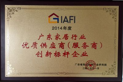 近日,2014年度广东家居管理及科技进步与知识产权创新盛典在东莞厚街喜来登大酒店举办。在2014年行业科技进步标杆评选活动中,蝶依斓获“2014年广东家居行业优质供应商创新标杆企业”殊荣。