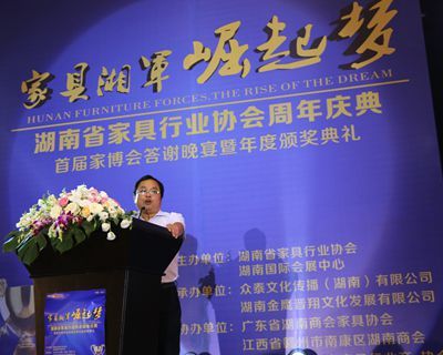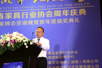 庆典活动上,湖南省家具行业协会会长、湖南省晚安家居实业有限公司董事长曹泽云致欢迎辞,向莅临庆典活动现场的领导、省内外兄弟协会及家具企业代表们表示热烈的欢迎,他表示,协会自去年9月成立以来,得到了各位家具同仁的大力支持,才使得协会工作顺利开展,在此向各位代表致以诚挚的感谢!也希望各位家具同仁们在日后的工作中多提宝贵意见,共同为湖南家具产业的持续发展而努力!