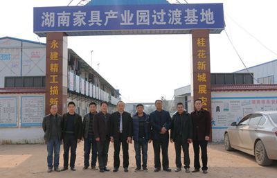 湖南家协会长曹泽云、秘书长刘发刚与会员单位一行参观考察湖南家具产业园过渡基地