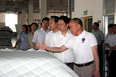 【湖南家协讯】2014年7月9日,长沙市委副书记、市人民政府市长胡衡华一行莅临协会会长单位晚安家居集团视察指导工作,在协会会长曹泽云的陪同下先后参观了晚安工业园区、床垫生产车间与晚安·中国红木馆。参观中,市长胡衡华关切地询问了晚安目前的生产、经营等相关情况及目前家居行业形势,肯定了近年来晚安在发展中所取得的成就,并鼓励晚安人继续保持与发扬积极进取、扎实肯干、开拓创新的精神,以积极的姿态迎接行业洗牌带来的机遇期,作为协会会长要湖南家居产业开创崭新的局面。