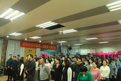 联谊集团领导团队、万博珑项目工程团队、物业管理团队以及喜盈门全体成员共同参加此次誓师大会