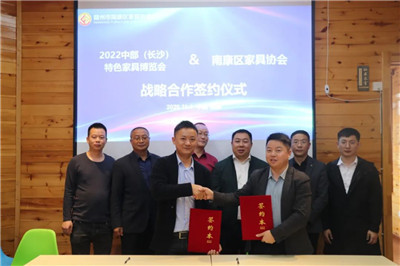 2022中部(长沙)特色家具博览会与南康家具协会签署战略合作协议,象征着“两会”将进一步深入交往合作,全面助力两地家具企业提升品牌影响力。