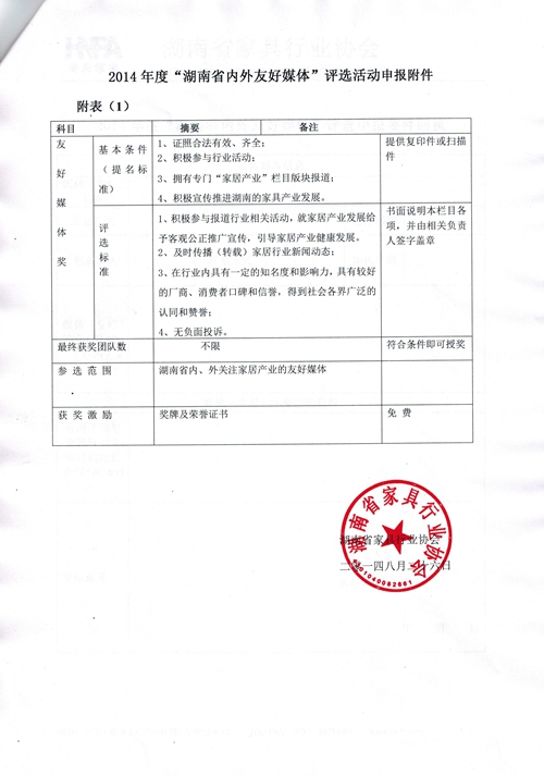 【湖南家协讯】2014年度“湖南省内外友好媒体”评选活动申报附件。