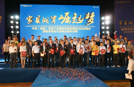2014年9月29日,湖南省家具行业协会主题 “家具湘军崛起梦”周年庆在湖南国际会展中心盛大举行。600余人欢聚一堂,共同见证湖南省家具行业协会一周年华诞。向行业展示了协会成立一年来,所做的工作情况,同时举行年度颁奖典礼,推出全省各地州市具有代表性的优选家具企业、卖场、经销商等。