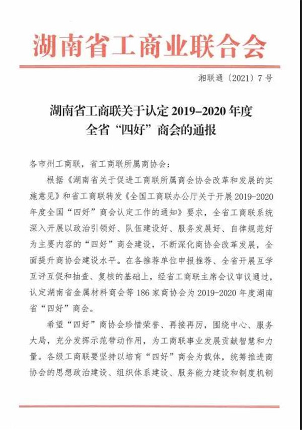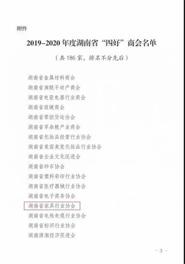 经省工商联主席会议审议通过,湖南省家具行业协会被认定为2019-2020年度湖南省“四好”商会。