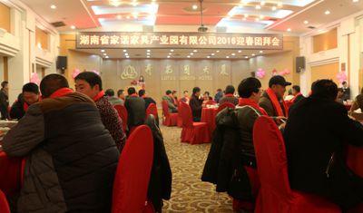 炮竹声声辞旧岁,和风送暖迎新春。在这年末迎春之际,昨日,湖南家谐家具产业园有限公司在荷花园大酒店隆重举行了2016迎春团拜会,浏阳市制造产业基地管委会书记李建,湖南家协党支部书记、迈杰家具有限公司董事长赖昌发,秘书长刘发刚,副会长、湖南家谐家具产业园有限公司董事长李慧渊、湖南日报新闻中心主任陈英明出席大会。