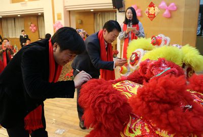 浏阳市制造产业基地管委会书记李建、湖南家谐家具产业园有限公司董事长李慧渊为舞狮点睛